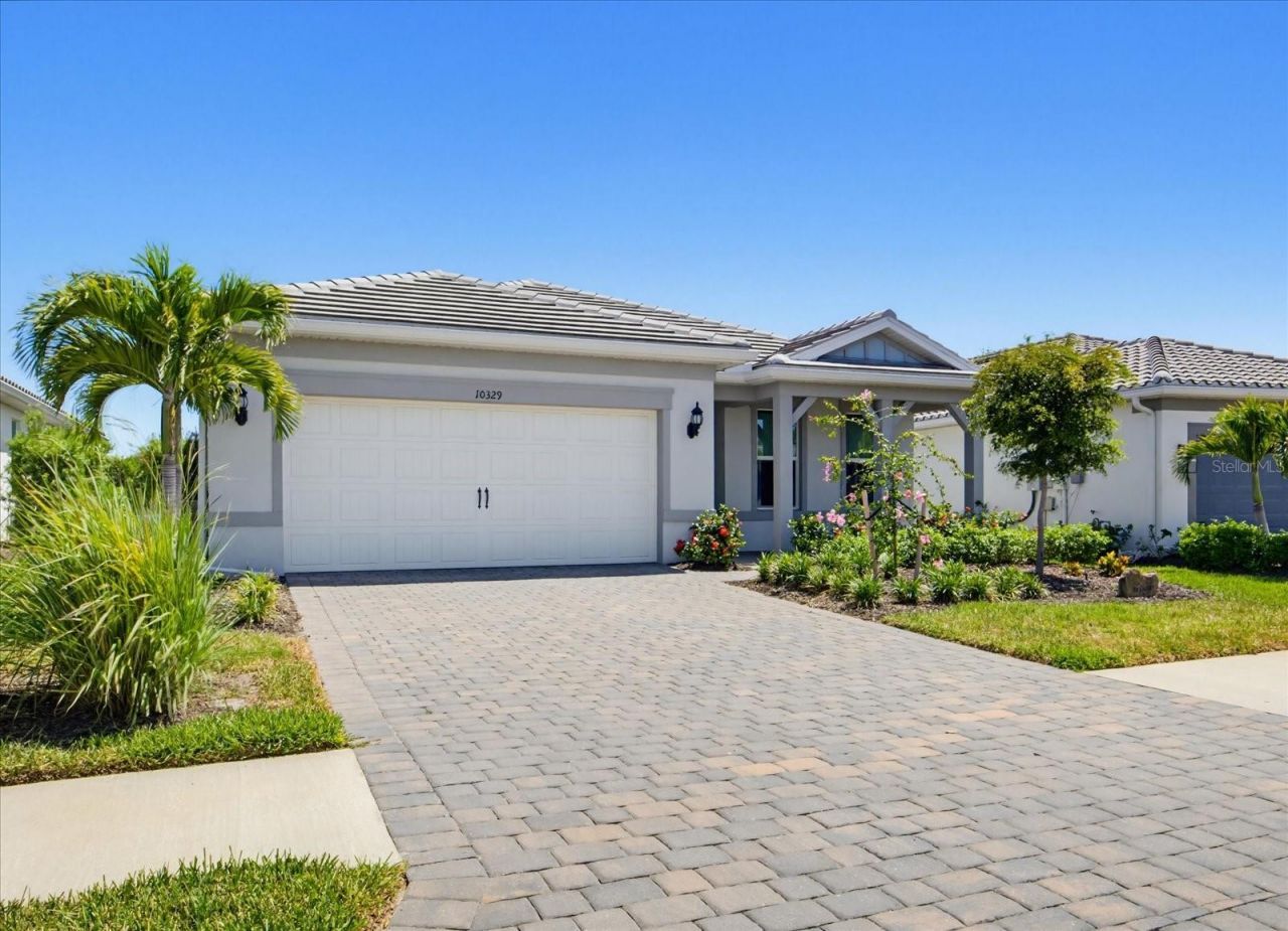 Welcome to the highly sought-after Mystique model in the desirable Beachwalk by Manasota Key, perfectly positioned to capture serene WATERVIEW. ONLY 2.5 MILES TO THE BEACH, This beautifully maintained 3 bedroom, 2 bath home with a versatile flex room offers the ideal layout for guests, a home office, or hobby space. The stylish kitchen features white cabinetry, quartz countertops, a spacious center island, custom pantry closet, and a stainless steel GAS COOKING appliance package, perfect for both everyday living and entertaining. The OPEN CONCEPT gathering room provides a comfortable and inviting space to relax or host family and friends. Exit the double sliders to the large lanai with a SALT WATER INGROUND HEATED POOL overlooking the pond. The primary suite is a true retreat, offering a generously sized bedroom, a well appointed en suite bath with an expansive walk-in shower, and a custom walk-in closet professionally installed designer closet that provides both elegance & storage options. 2 additional bedrooms provide ample space for family or visitors with custom closets. Energy efficiency is a standout feature, with fully OWNED SOLAR PANELS helping keep electric costs low. Additional upgrades include WATER FILTRATION SYSTEM, epoxy coated garage floor with a 4 FOOT extension, IMPACT WINDOWS, a tankless hot water heater, plantation shutters, tray ceilings, UV light on A/C, STORM SMART SHADES for added protection and peace of mind. Enjoy the perfect blend of comfort, style, and efficiency in this exceptional waterfront home. Living in Beachwalk means enjoying resort-style amenities, including a beautiful clubhouse, state-of-the-art fitness center, resort heated pool with lap lanes, tennis courts, PICKLEBALL COURTS, bocce ball, and miles of scenic walking and biking trails. ON PREMISES IS THE HIGH TIDE TIKI BAR overlooking the large lake and the upscale Waterline Restaurant opening in 2026. Residents also enjoy a vibrant social calendar and an active lifestyle within this meticulously maintained community. With professionally landscaped grounds, a serene preserve setting, and close proximity to beaches, dining, farm markets, downtown Venice, and shopping, this home offers the perfect combination of luxury, convenience, and coastal resort-style living. NO CDD. NOT IN A FLOOD ZONE. Enjoy the perfect blend of comfort & style, come take a look!