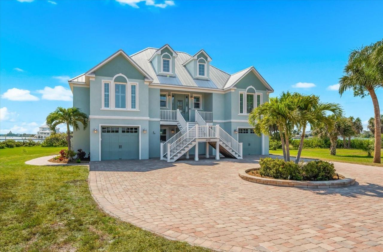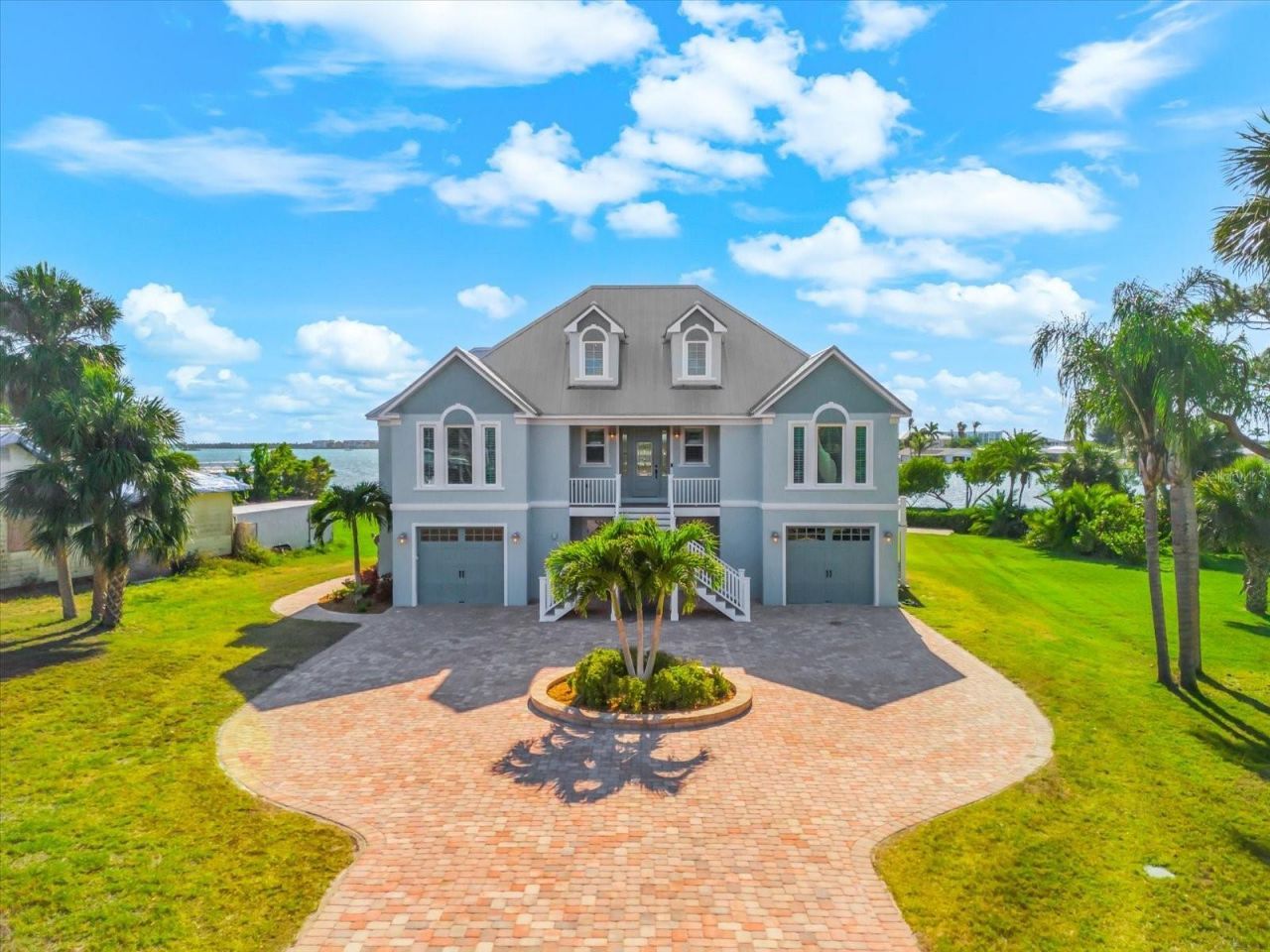 A luxury waterfront escape, built in 2016 with solid construction and set on over a half-acre, this five-bedroom, five-bath home is offered turnkey furnished-arrive and start living. Designed to sleep up to 15, it's made for effortless hosting and unforgettable stays.Calm water just steps away, with direct, no-bridge Gulf access. A covered 10,000 lb boat lift with electric and fresh water, plus a fish cleaning station, keeps every day on the water simple. The oversized heated pool and spa anchor a wide paver patio built for both relaxed afternoons and sunset evenings by the fire.Inside, clean lines and thoughtful finishes define the space-tile floors, custom window treatments, and a beautifully appointed kitchen with granite countertops, soft-close cabinetry, stainless appliances, double oven, pot filler, and a large pantry. Multiple ensuite bedrooms and individual thermostats throughout offer comfort and privacy for every guest.Upstairs, a loft with Murphy bed and full bath creates a flexible retreat, while the screened, covered Trex porch captures elevated water views and unforgettable sunsets. The lower level, non-conforming space adds bonus living with direct pool access, a game room, storage, and an additional bedroom and bath not included in the official count-ideal for overflow guests. Split garages for three cars and an elevator add everyday convenience.Built to last with a metal roof and PGT impact windows, this home lets you focus on what matters-boating, entertaining, and soaking in the waterfront lifestyle.