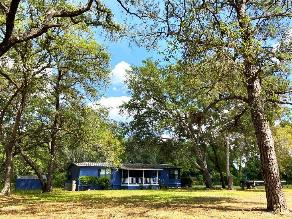 Bring the horses! Immaculate 3/2 manufactured home with front and rear covered porches on 3 high & dry acres with no-climb horse fencing. Home looks like site-built home and was recently remodeled. Upgrades include crown molding, whole house water filtration system, several outbuildings with electric, 2-car carport and recent septic and well replacements. With amazing pasture views in a private, park like setting while still in close proximity to Ocala and Gainesville, this updated home is worth a look!