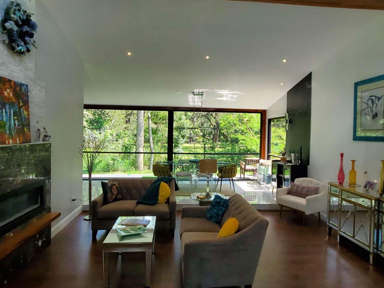 Midcentury Modern home is fully renovated for modern life and is move-in ready. There are no projects to worry about with this beautifully decorated home that was included in the Temple Terrace 2023 Holiday Parade of Homes. Located in the peaceful Pleasant Terrace neighborhood within walking distance of the Univ. of S. FL , this 3 bedroom, 2 bath home with a finished 2 car garage is bursting with natural light. Its large foyer opens to the formal living room with wood floor, a vaulted ceiling, and electric fireplace. Beyond that is a 20 foot dining room that easily hosts large family gatherings. A shaded deck for bar-b-q-ing and relaxing is just outside the glass doors at the end of the dining room. Kitchen and bathrooms have been completely renovated. Kitchen boasts Cambria countertops, a large island with quartz waterfall edge, a new wall oven, garbage disposal, and plenty of cabinets that include spice cabinet, corner carousel, and pullout trash & recycle bins. Kitchen is part of a limited open floor plan that includes a light-filled breafast room and a family room that enjoys the double sided fireplace. Primary bedroom has wood floors (not vinyl) and his/hers closets. The adjoining primary bathroom has an oversized shower and double sinks. Guest bath features wifi. This spacious and bright home has a new roof and gutters, new Hardie board siding, 2 decks, 1 wraparound, new windows throughout, all new interior doors, and a utility room with W/D hookup, a washtub, and more cabinets for storage. Fenced back yard for the safety of family and pets. Five minutes to grocery, pharmacy, veterinarian, restaurants, nail salon, dog park, and police dept. Within 10 minute drive to the fully outfitted Temple Terrace Family Rec Center (gym,pool,tennis, etc) and the historic Temple Terrace Golf course.