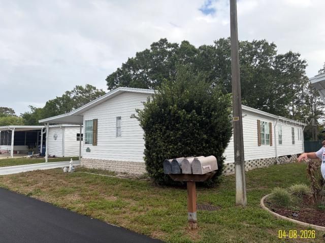 Grand Valley 55+ Community. Stunning double-wide, 3-bedroom, 2-bath home on a beautiful lot. The property boasts excellent landscaping and a welcoming entryway leading to a versatile front room, ideal as a library, music room, sitting area, or TV room. Access a spacious screened lanai with unobstructed street views from this room, perfect for enjoying the cool evening breeze. The light and airy eat-in kitchen features modern appliances, tile floors, electric cooktop, built-in wall oven, refrigerator, dishwasher, garbage disposal, and a corner sink with panoramic views. A large nine-door pantry offers abundant storage space. The laundry room includes a washer, dryer, deep sink, fold-down shelf, and direct access to the garage. The guest bath conveniently connects to one of the guest bedrooms for added privacy, while the second guest room offers generous space. The open-concept dining and living area is expansive-perfect for entertaining. Double doors lead into a large master suite with a spacious ensuite bathroom, his-and-hers walk-in closets, and three corner windows that fill the room with natural light. The land is owned by Grand Valley, and each unit pays a monthly lot rent of $974.50, which includes the land lease, taxes, lawn care, trash & recycling, heated pool, BBQ area, fire pit, shuffleboard court, RV parking, and access to the clubhouse with kitchen and library. The owner is highly motivated to sell. Come see this beautiful home - we challenge you to find something you don't love about it!